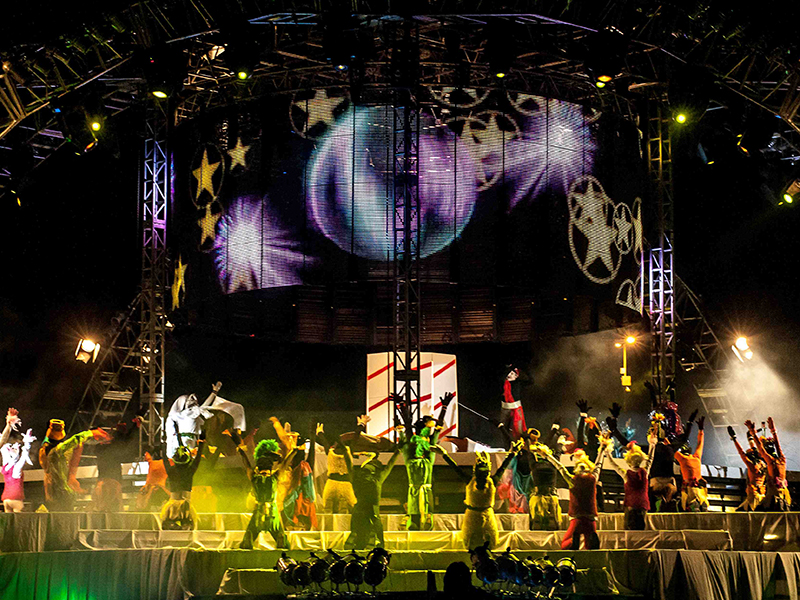 (Producciones en Vivo y Multimediales) Una vez establecido ese objetivo, con nuestro equipo de artistas y creativos nos ponemos a elaborar el contenido de lo que ocurrirá en dicho evento.
